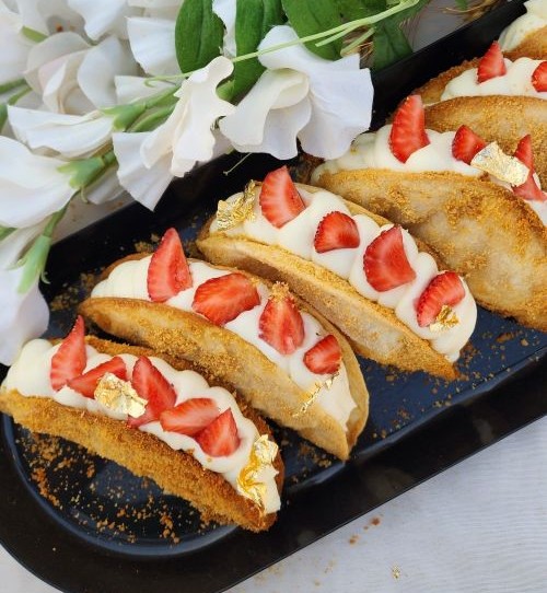 Put the cornflakes in a bowl and pour in the sweet cream, stir and leave aside.